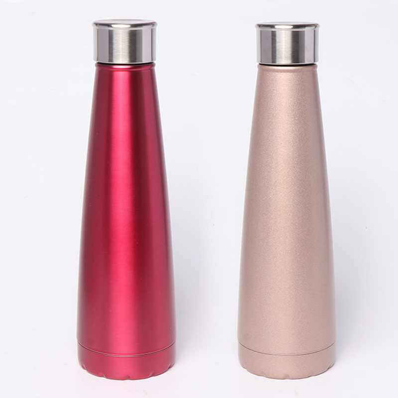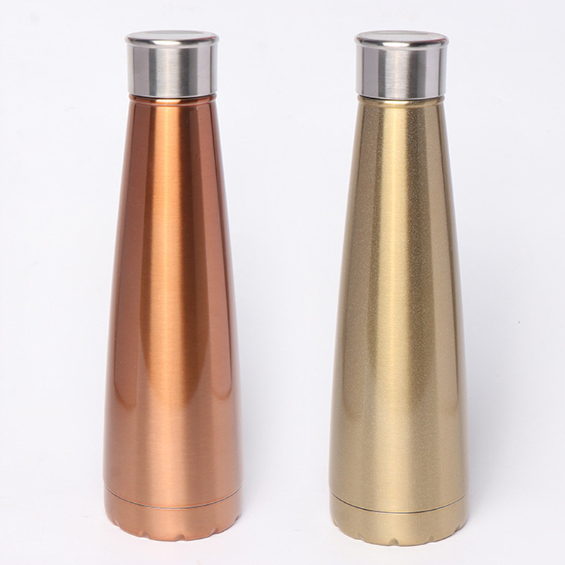 Ces bouteilles en acier en acier inoxydable élégantes sont vos compagnons parfaits pour profiter d'un temps agréable. Vous pouvez les remplir de différentes saveurs, telles que des smoothies, du lait, du jus ou du café. Avec leur design élégant et conique et leurs finitions métalliques (en argent, en or et en bronze), ils gardent non seulement vos boissons à la température souhaitée, mais ajoutent également une touche d'élégance à votre routine quotidienne. Que vous soyez au travail, au gymnase ou en voyage, ces bouteilles vous permettent de savourer vos boissons préférées à tout moment, n'importe où.