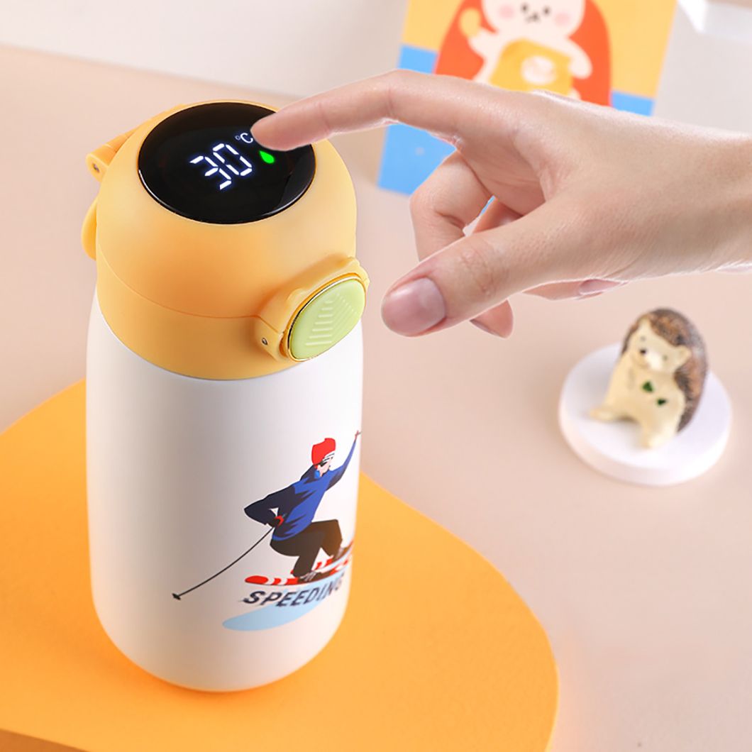 Cette tasse thermos pour enfants se débarrasse du problème de tester la température de l'eau. Avec juste une touche douce, il peut afficher la température. Le couvercle est jaune et il y a un écran numérique sur le dessus qui montre clairement la température. Il est très pratique pour les enfants de savoir si l'eau est adaptée à boire, en s'assurant qu'ils peuvent profiter de leur boisson en toute sécurité et confortablement.