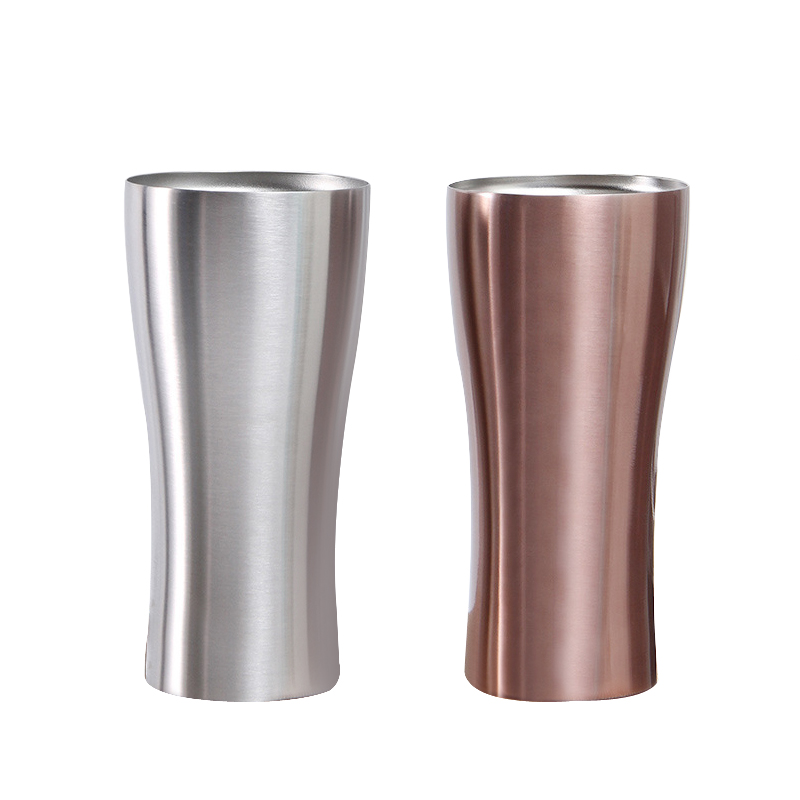 Pour briser la monotonie des tasses en acier inoxydable, nous vous présentons quatre options de couleurs tendance : Titanium Silver, Champagne Gold, Rose Brown et Deep Sea Blue. Le modèle Titanium Silver incarne la sophistication minimaliste, où les tons métalliques froids se heurtent à la bière ambrée pour une ambiance haut de gamme. Champagne Gold ajoute une touche de luxe léger, parfaite pour verser une bière dorée qui fait briller le soleil dans le verre. Rose Brown crée une atmosphère rétro, remplissant instantanément la réunion d'une ambiance décontractée lorsqu'elle est servie avec une bière fruitée. Deep Sea Blue est un choix de personnalité audacieux, tenir la tasse donne l'impression d'embrasser le mystère et la fraîcheur des profondeurs marines. La conception unique du corps incurvé s'adapte aux courbes de la paume, offrant une sensation soyeuse et stable lorsque vous soulevez le verre.