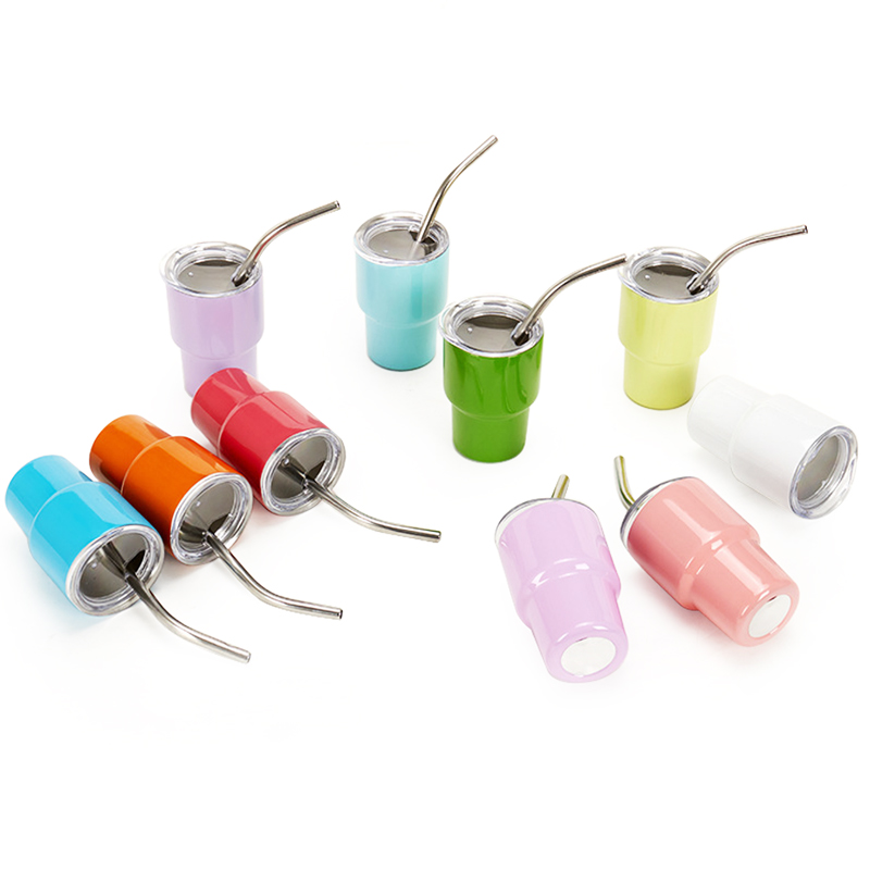 Mini gobelet en acier inoxydable Color Pop avec couvercle et paille