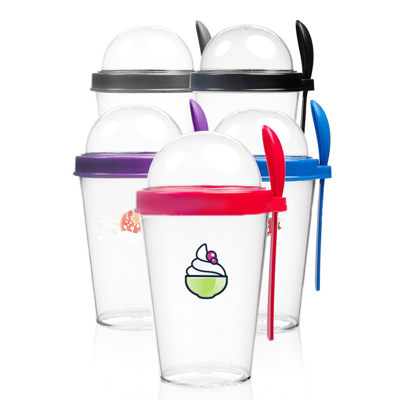 Tasse à flocons d'avoine/lait en plastique de 400ML avec couvercle et cuillère, gobelet de petit déjeuner Portable pour céréales, yaourts et salades