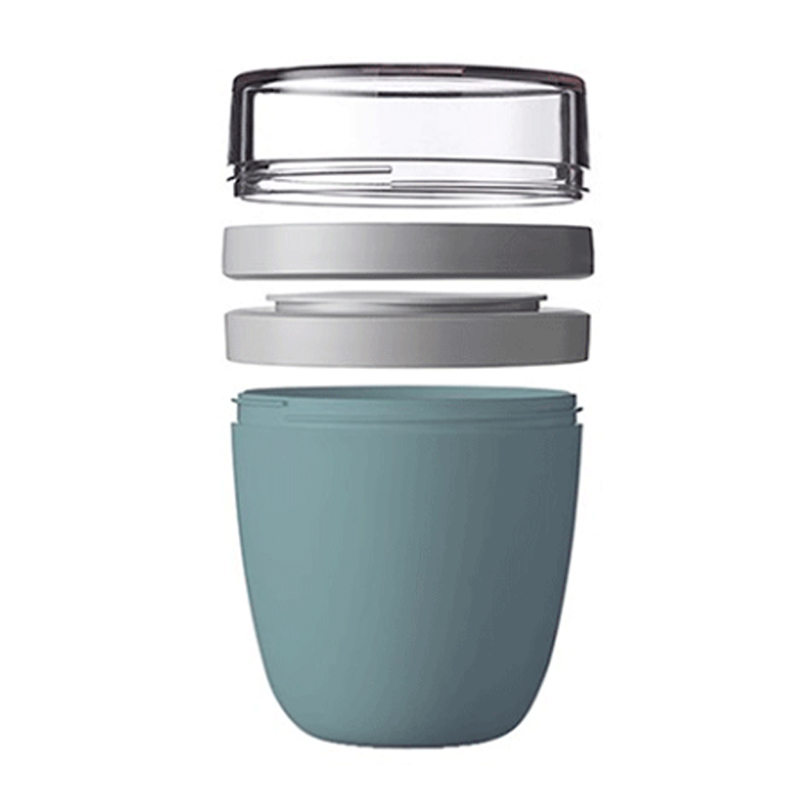 Fatigué de sacrifier une alimentation saine pour plus de commodité ? Notre tasse de petit-déjeuner à double compartiment est conçue pour transformer vos matinées et vos journées chargées, en apportant un équilibre à votre style de vie. Le récipient principal de 500 ml contient votre yaourt préféré, vos flocons d'avoine, votre pouding au chia ou votre salade fraîche, tandis que le compartiment supérieur transparent de 200 ml garde le granola, les noix, les fruits ou la vinaigrette frais et séparés jusqu'à ce que vous soyez prêt à manger. Fini les céréales détrempées ou les légumes verts fanés : juste des repas frais et délicieux à tout moment et où que vous soyez.
