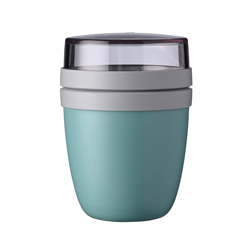 Ce contenant polyvalent n'est pas réservé qu'aux matins. Utilisez-le pour les salades du déjeuner, les collations de l'après-midi (pensez au houmous et aux légumes) ou même le pudding au chia pour le dessert pendant la nuit. Le compartiment supérieur de 200 ml est parfait pour répartir les collations, afin que vous puissiez éviter de trop manger et rester sur la bonne voie avec vos objectifs de santé. Que vous prépariez les repas de la semaine, prépariez un pique-nique ou que vous vous rendiez au bureau, cette tasse s'adapte à votre vie : un délicieux repas à la fois.