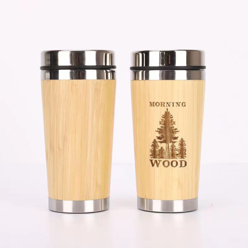 Tasse de voyage isolée en bambou en acier inoxydable pour gobelet à café