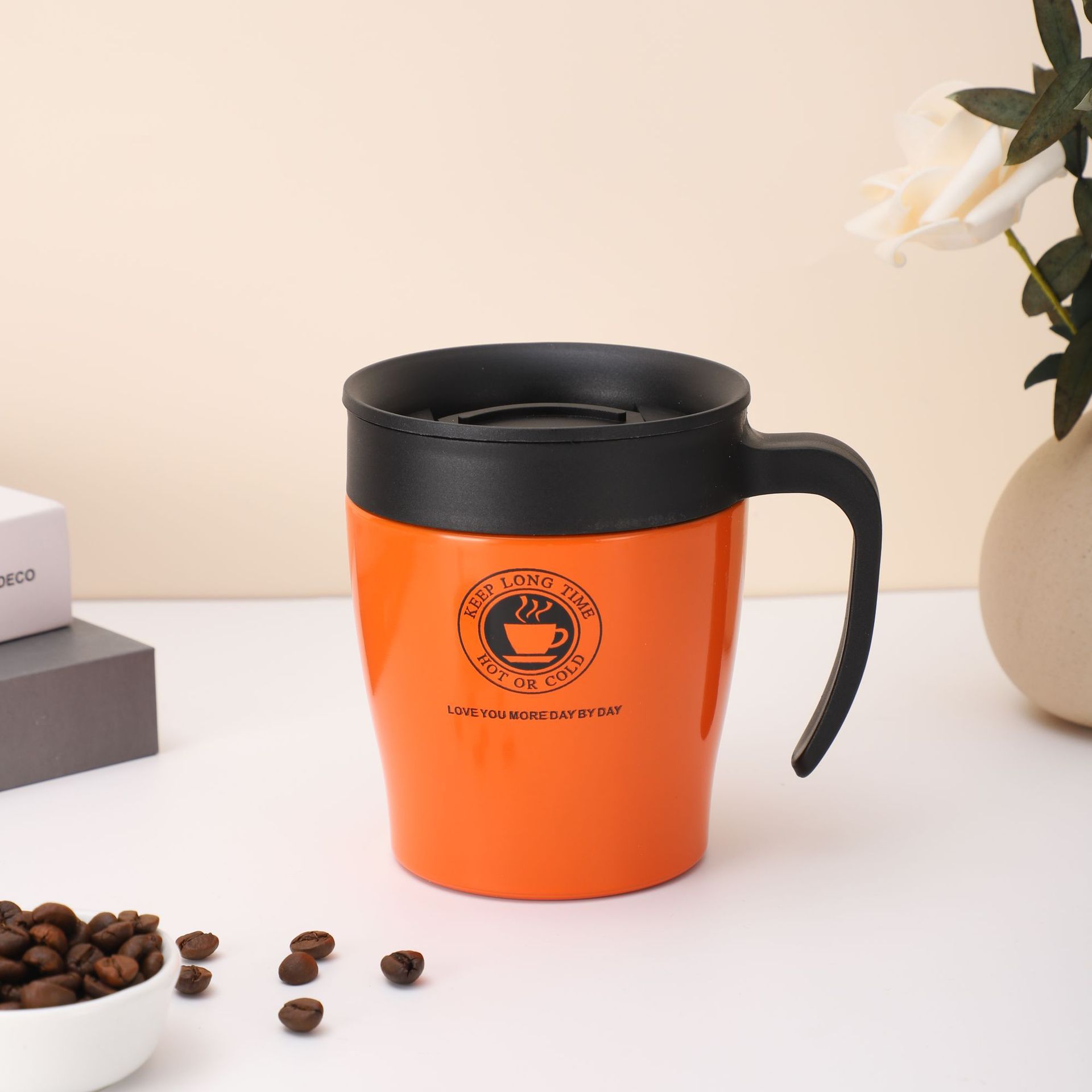 La tasse de café isolée est avec un acier inoxydable de qualité alimentaire premium 304 à l'intérieur, sans rouille, sans odor, sans plomb. Le couvercle était en silicone de qualité alimentaire, sans BPA, une durabilité élevée garantie.