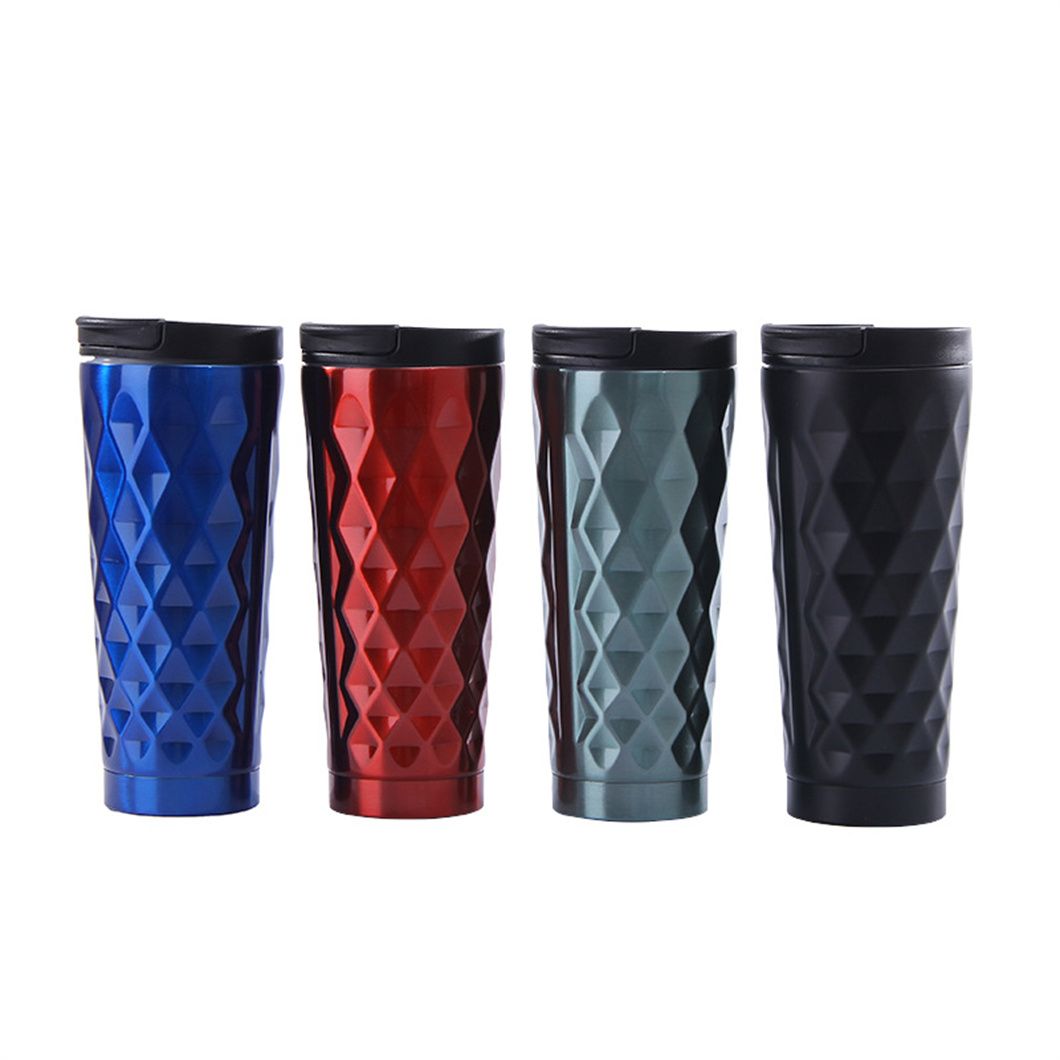 Avec une capacité de 500 ml, cette tasse répond aux besoins quotidiens de la consommation d'alcool et du café. Son corps à motif de diamant dispose d'une surface texturée mais non glissée pour une poignée confortable. Fabriqué en acier inoxydable avec isolation sous vide, il maintient le thé au lait chaud ou l'eau étincelante réfrigérée parfaitement réfrigérée pendant de longues périodes. La conception du top garantit une consommation directe facile tout en maintenant le sceau hermétique, ce qui la rend à l'épreuve des fuites pour les déplacements ou les aventures en plein air.