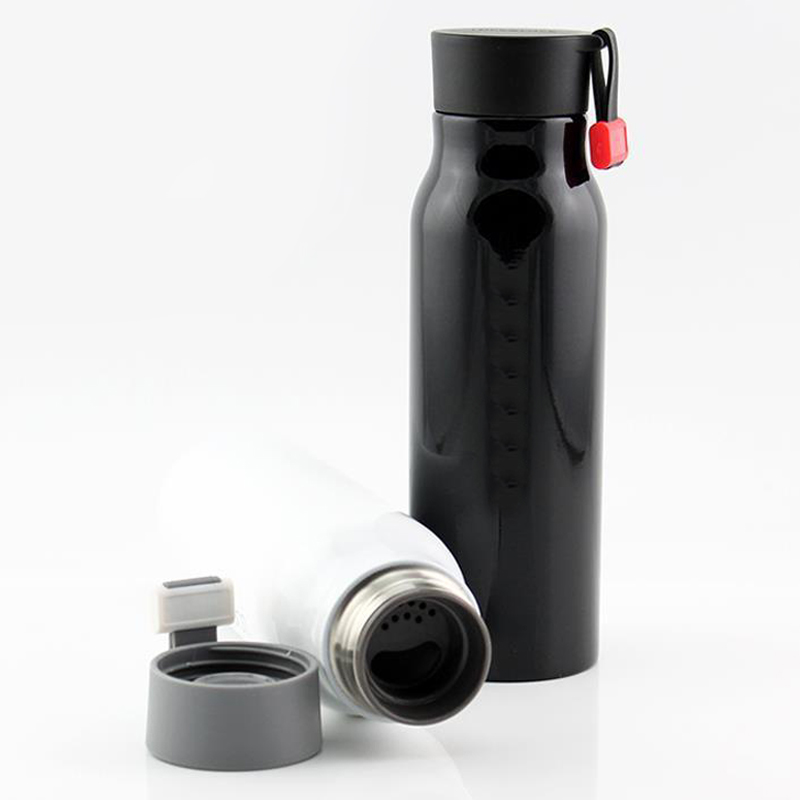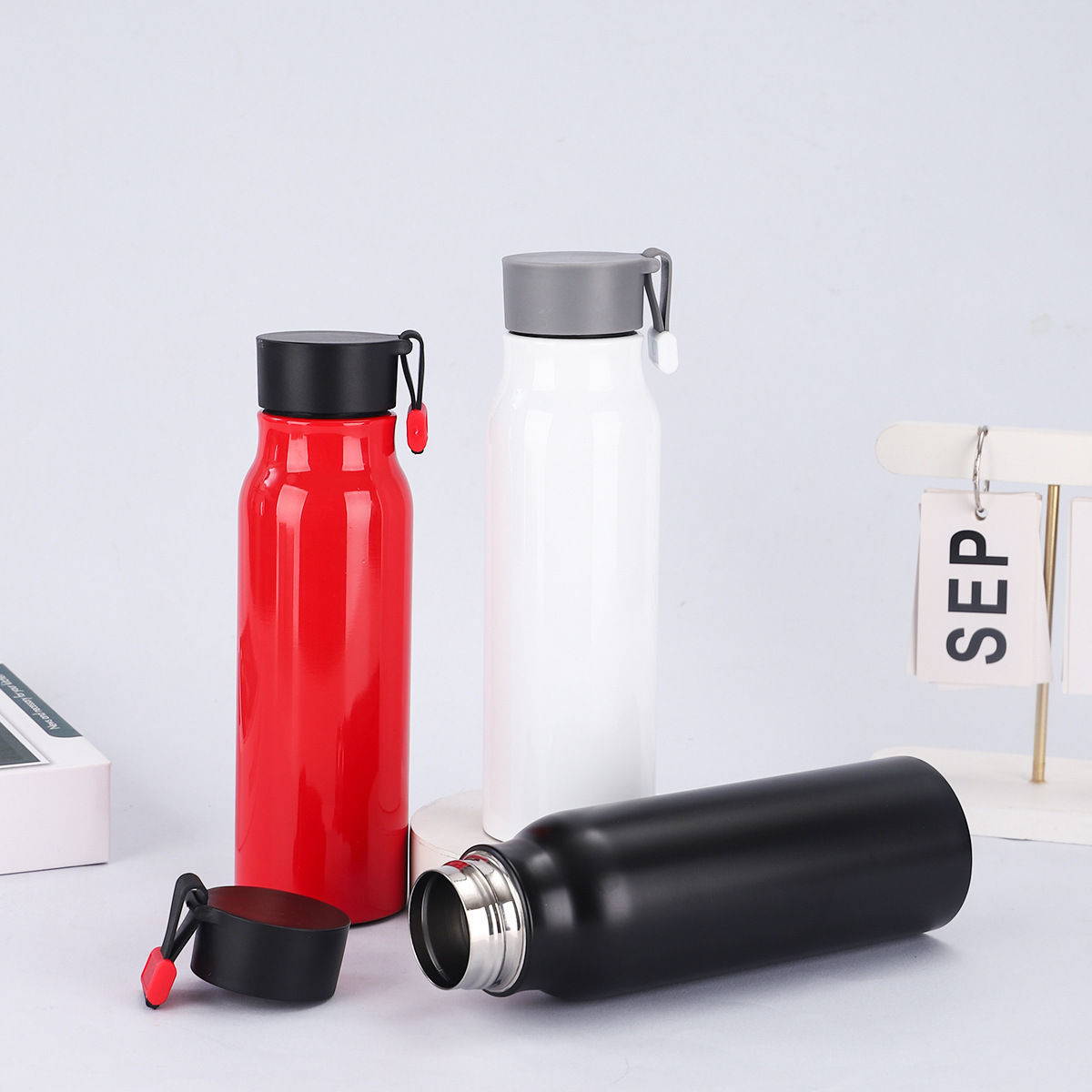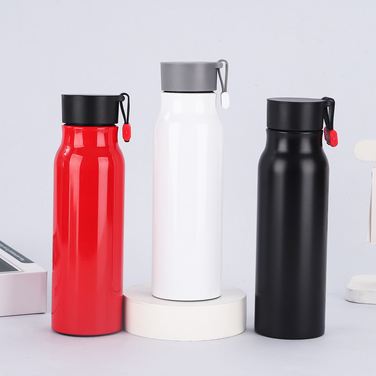 L'image montre une variété de bouteilles d'eau isolées. Ils sont disponibles dans différentes couleurs comme le violet clair, le rouge, le bleu clair, le blanc, le vert clair, le noir et le rose. Chaque bouteille a un couvercle, certains avec des crochets ou des boucles attachés pour un transport facile. Ces bouteilles ont probablement une bonne chaleur - des performances de conservation, adaptées pour garder les boissons chaudes ou froides, et sont pratiques pour une utilisation quotidienne, que ce soit au travail, à l'école ou pendant les activités de plein air.